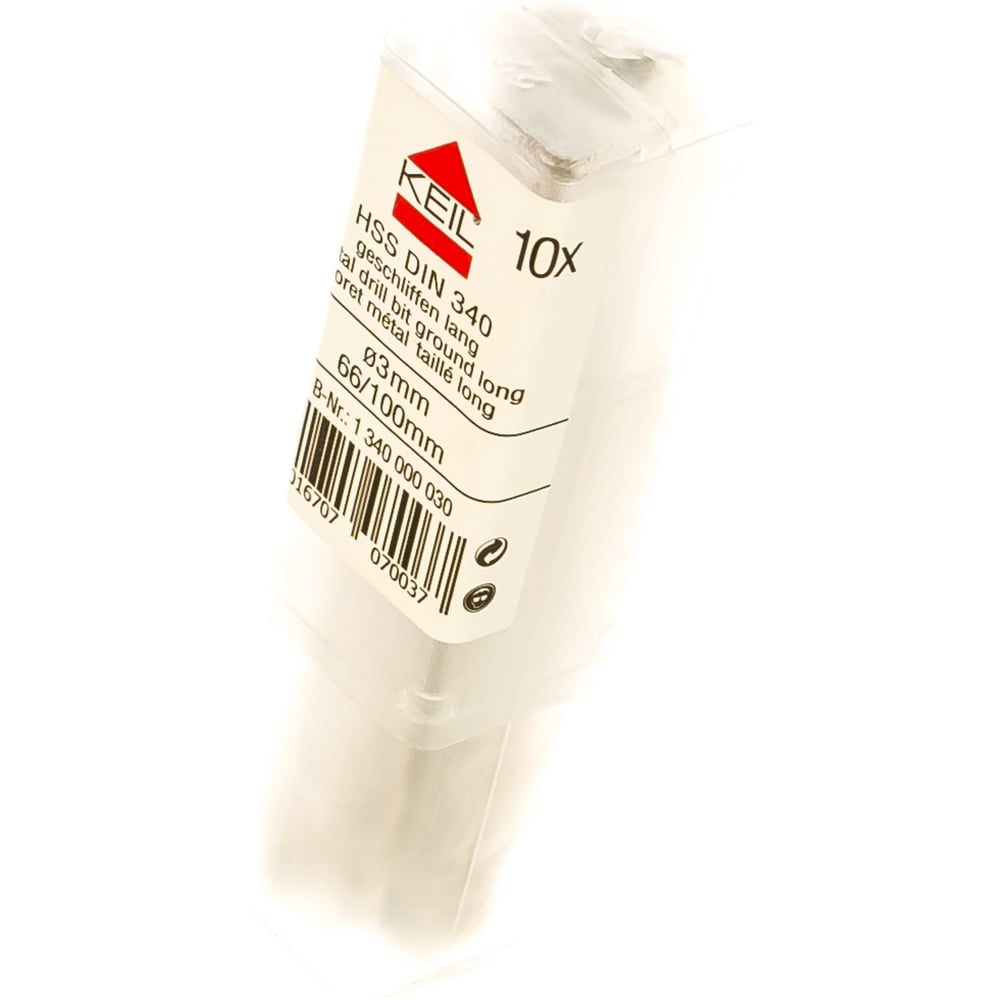 Сверло по металлу 10 шт. HSS DIN 340, длинное 3,0х100х66 мм KEIL 340000030