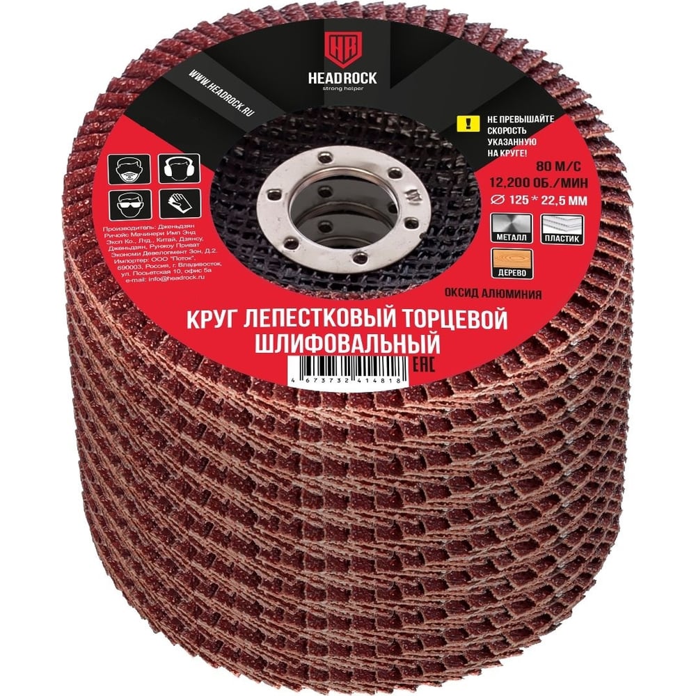 Круг шлифовальный лепестковый торцевой 125х22 мм, Р240 (компл. 10 шт.) HEADROCK 688-010-240