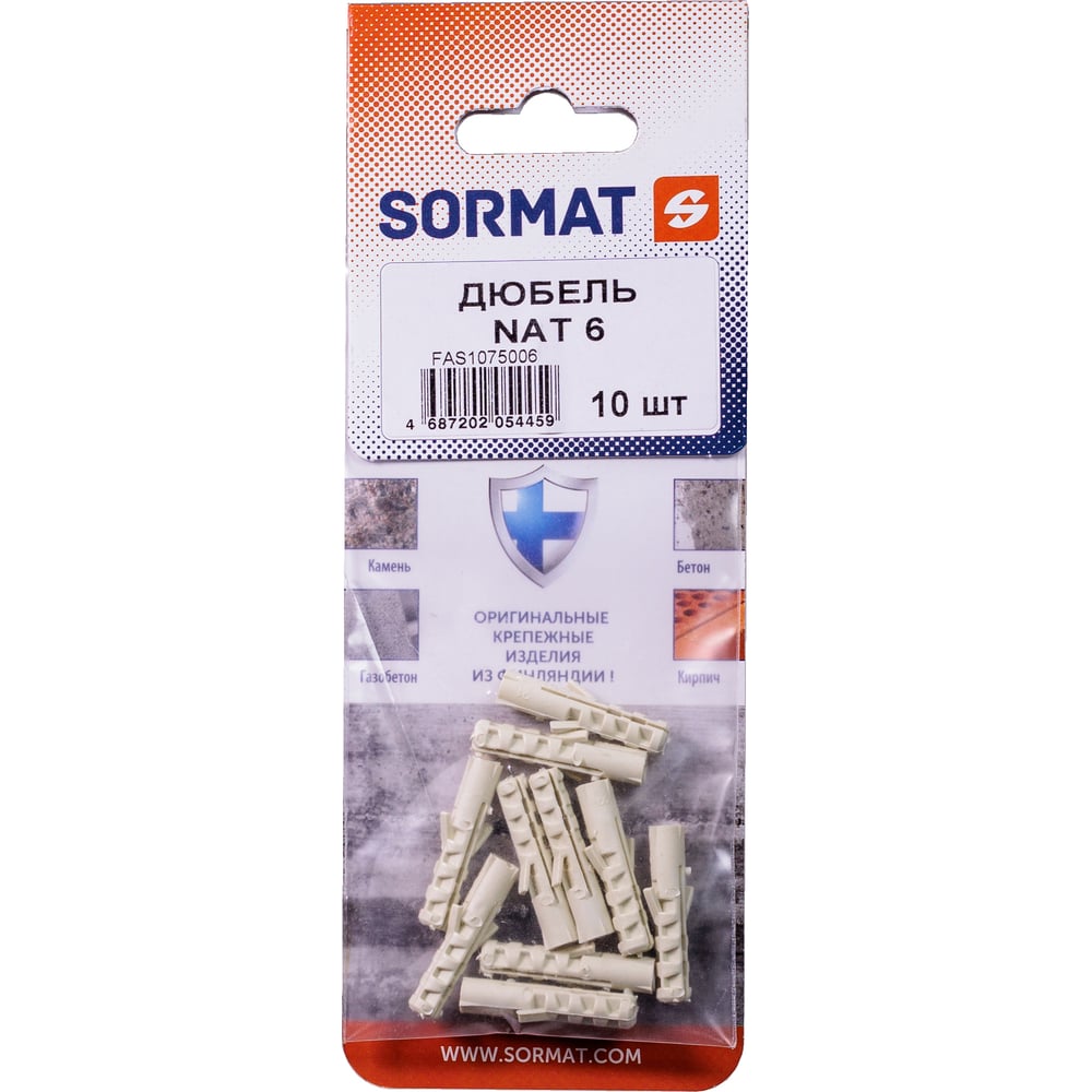 Дюбель нейлоновый SORMAT NAT 6x30 10 шт FAS1075006