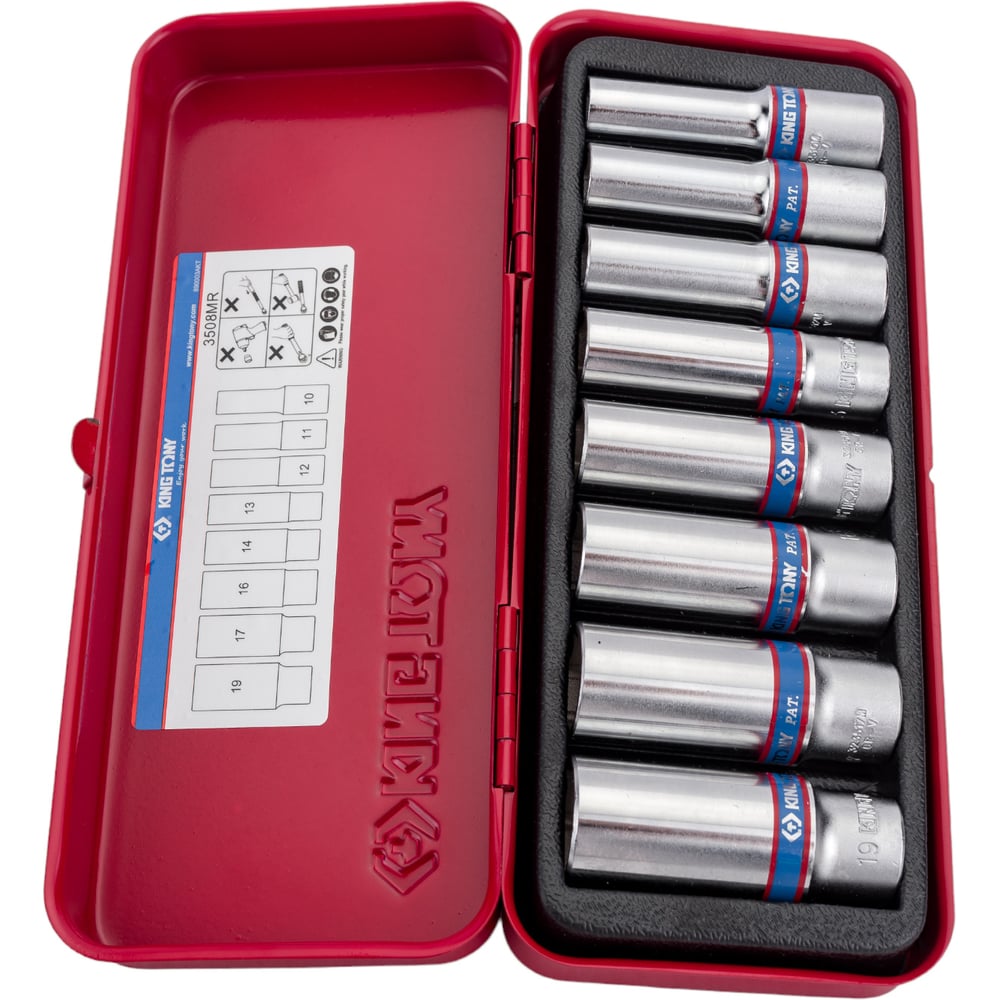 King tony набор глубоких торцевых головок 3/8", шестигранные, 10-19 мм, 8 предметов 3508mr