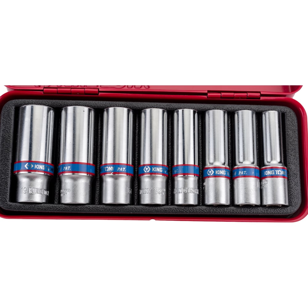 Набор шестигранных глубоких торцевых головок 3/8", 10-19мм, 8шт KING TONY 3508MR