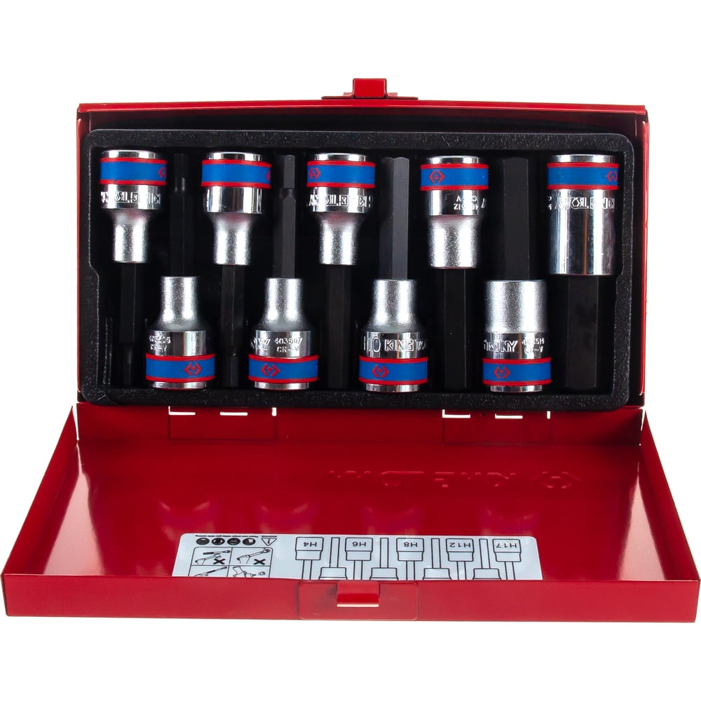 King tony набор торцевых насадок 1/2", hex, 4-17 мм, l = 80 мм, 9 предметов 4120pr