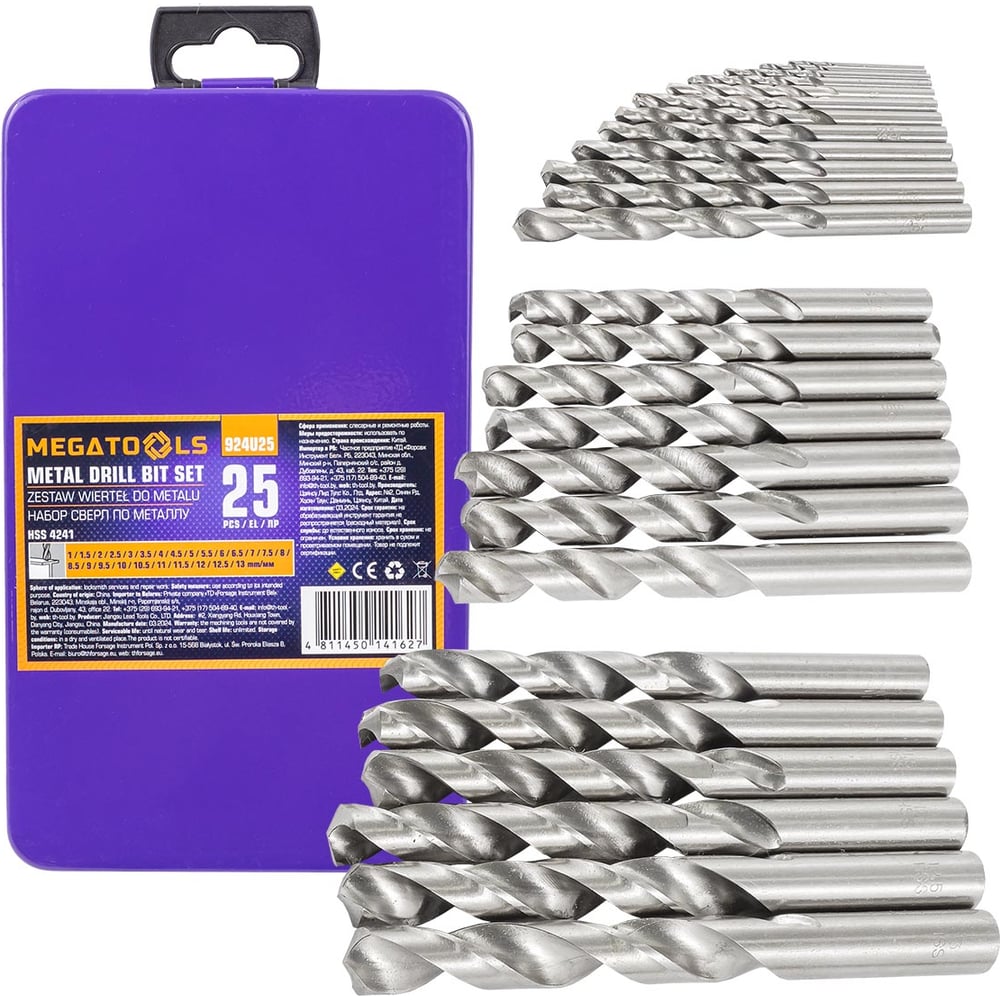 Сверла по металлу MEGATOOLS набор 25 предметов (1-13 мм) MT-924U25(60709)