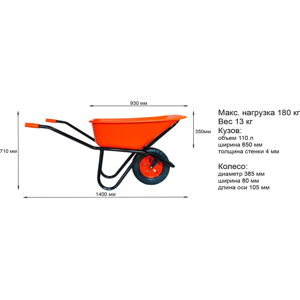 Тачка строительная одноколесная ООО РВ Пласт 110л/180кг, оранжевая 0256