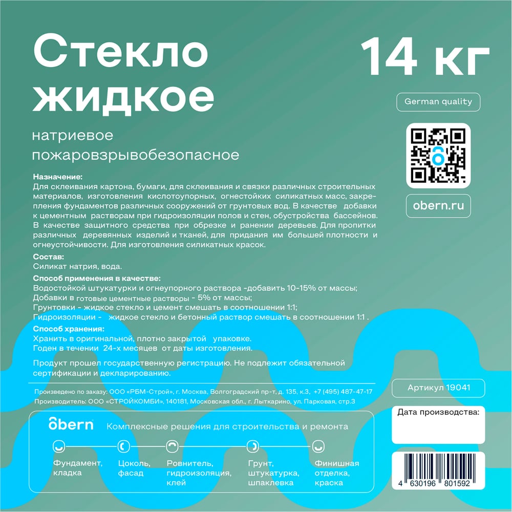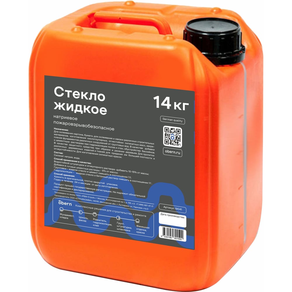 Жидкое стекло Obern 14 кг 13486