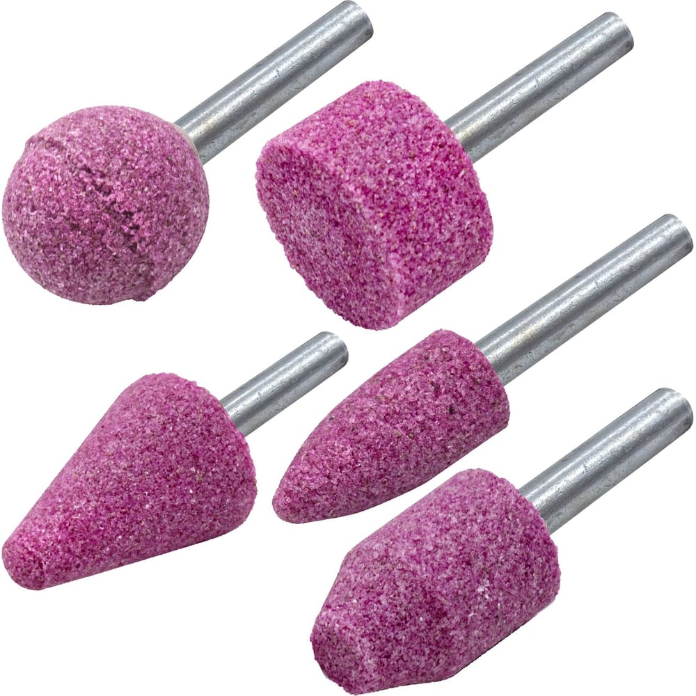 Набор шлифовальных камней оксид алюминия, хвостовик 6 мм, 24x37, 24x13, 23x23, 18x26, 12x25 мм, 5 шт РемоКолор 31-3-006