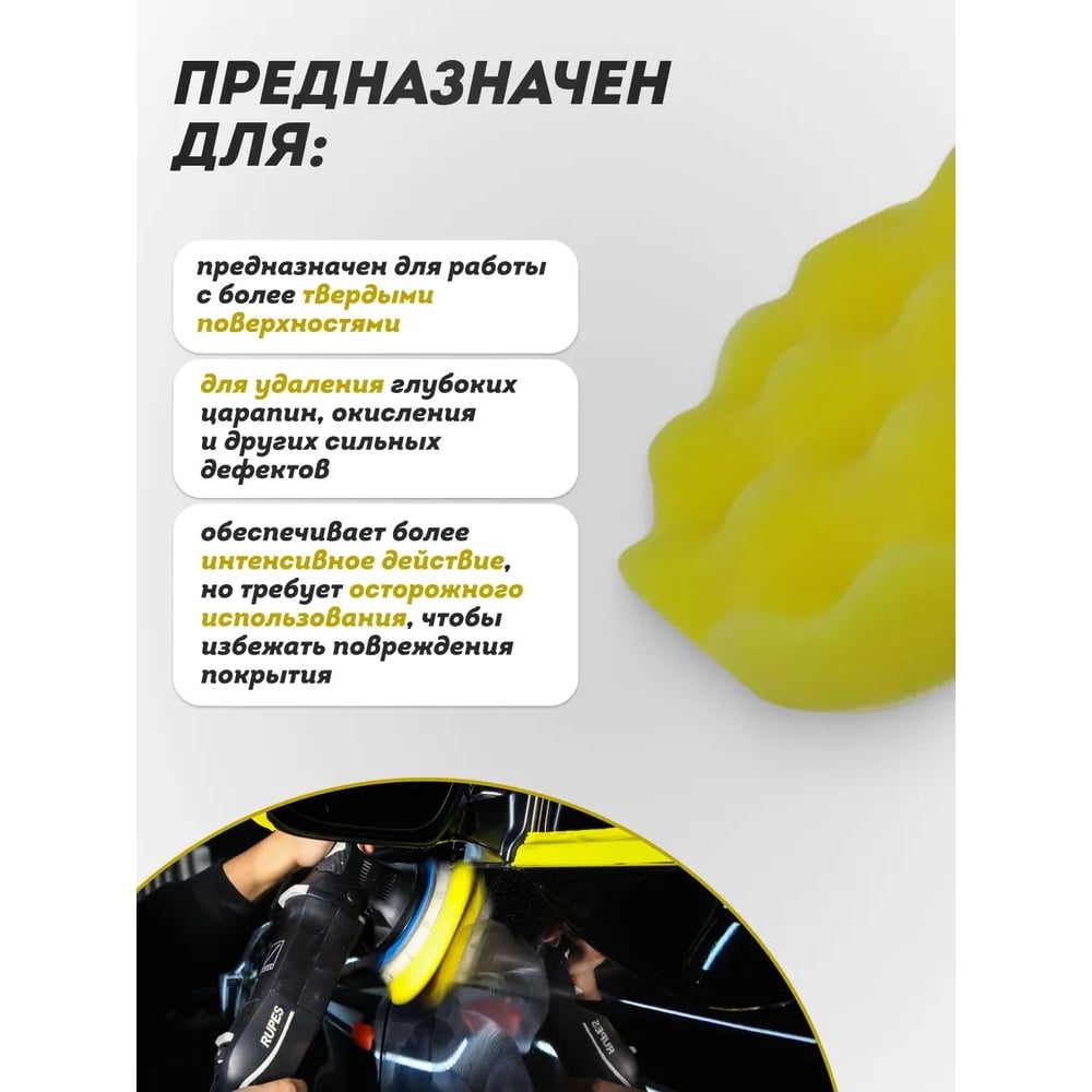 Губка самоцепляющаяся для полировки 150 мм, желтый Forsage F-PSP150W/Y(48512)