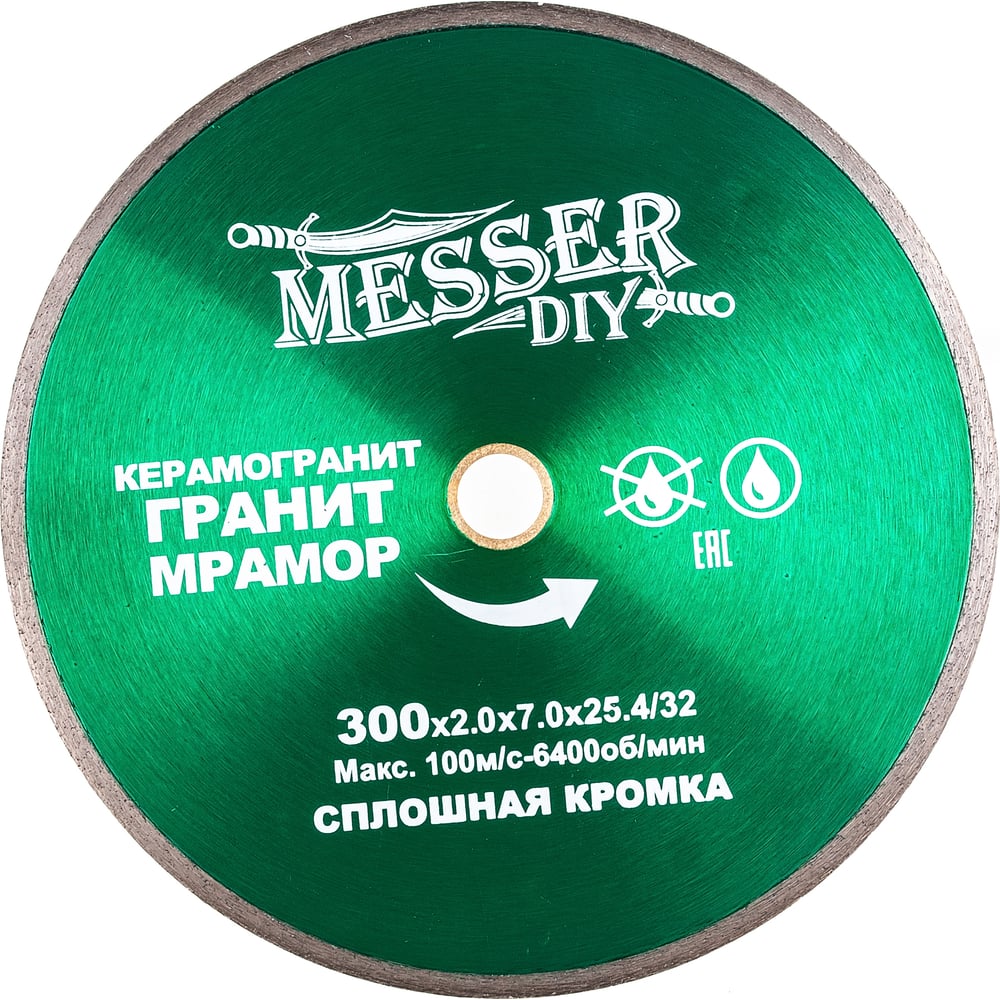 Диск алмазный сплошной по керамограниту, граниту, мрамору (300х32/25.4 мм) MESSER DIY 03.300.867