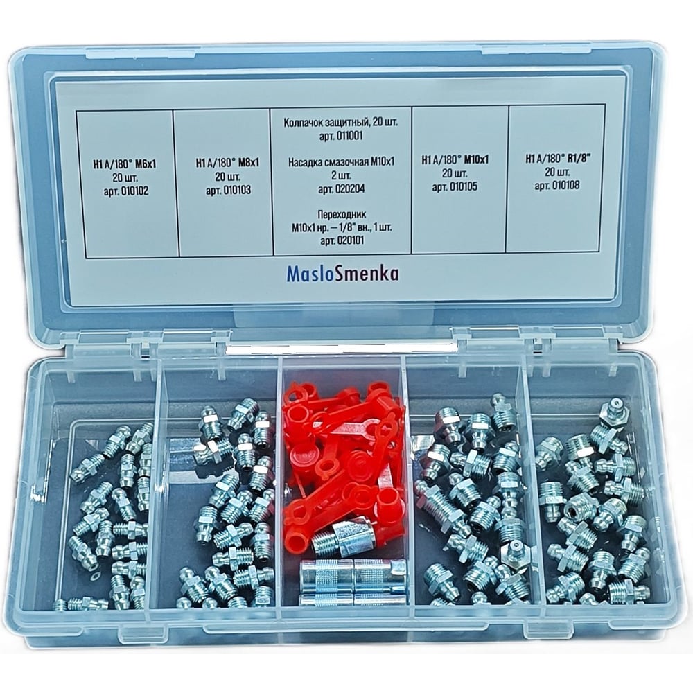 MasloSmenka Набор пресс-масленок (7 типов / 103 предмета) в кейсе GN-KIT-7-103, 012001