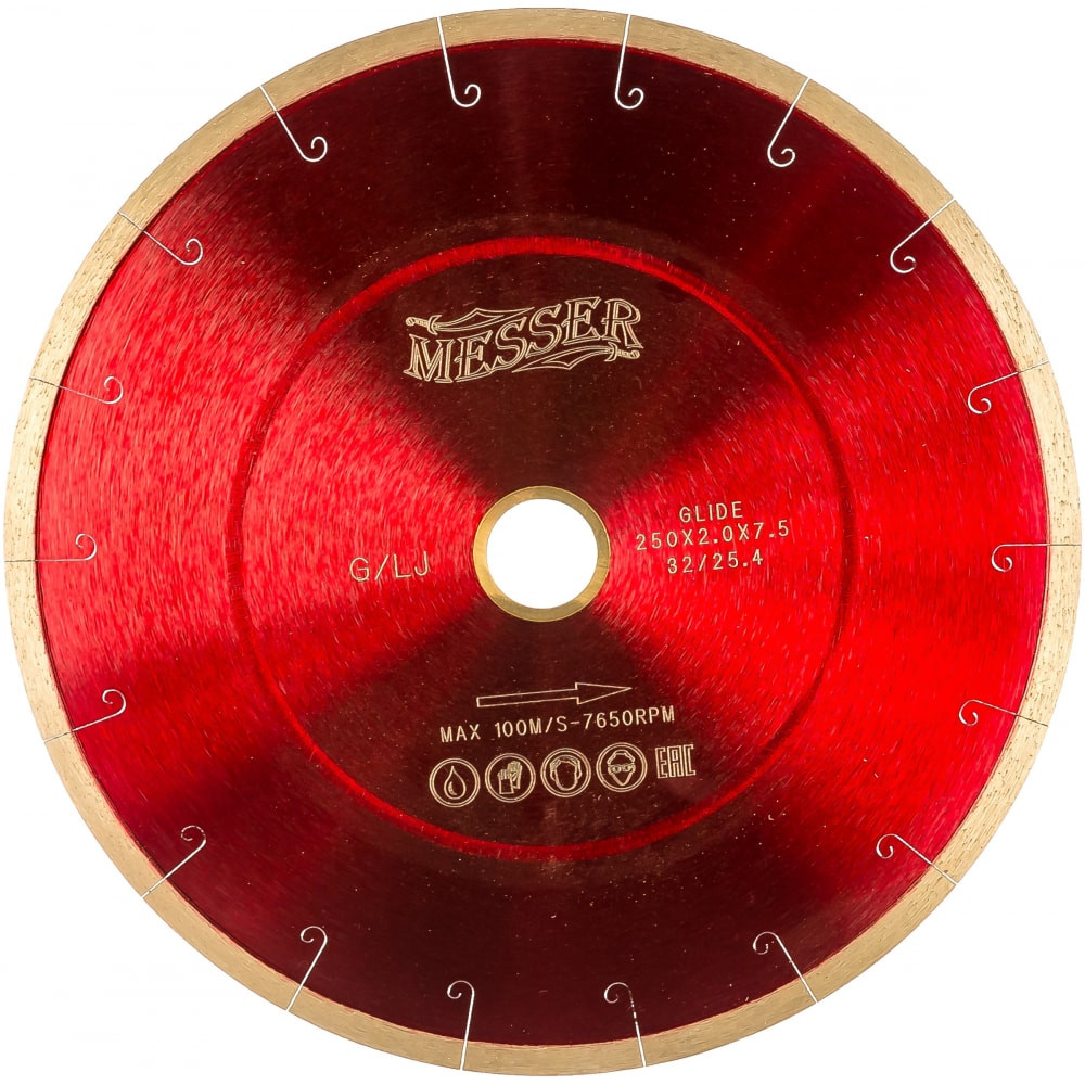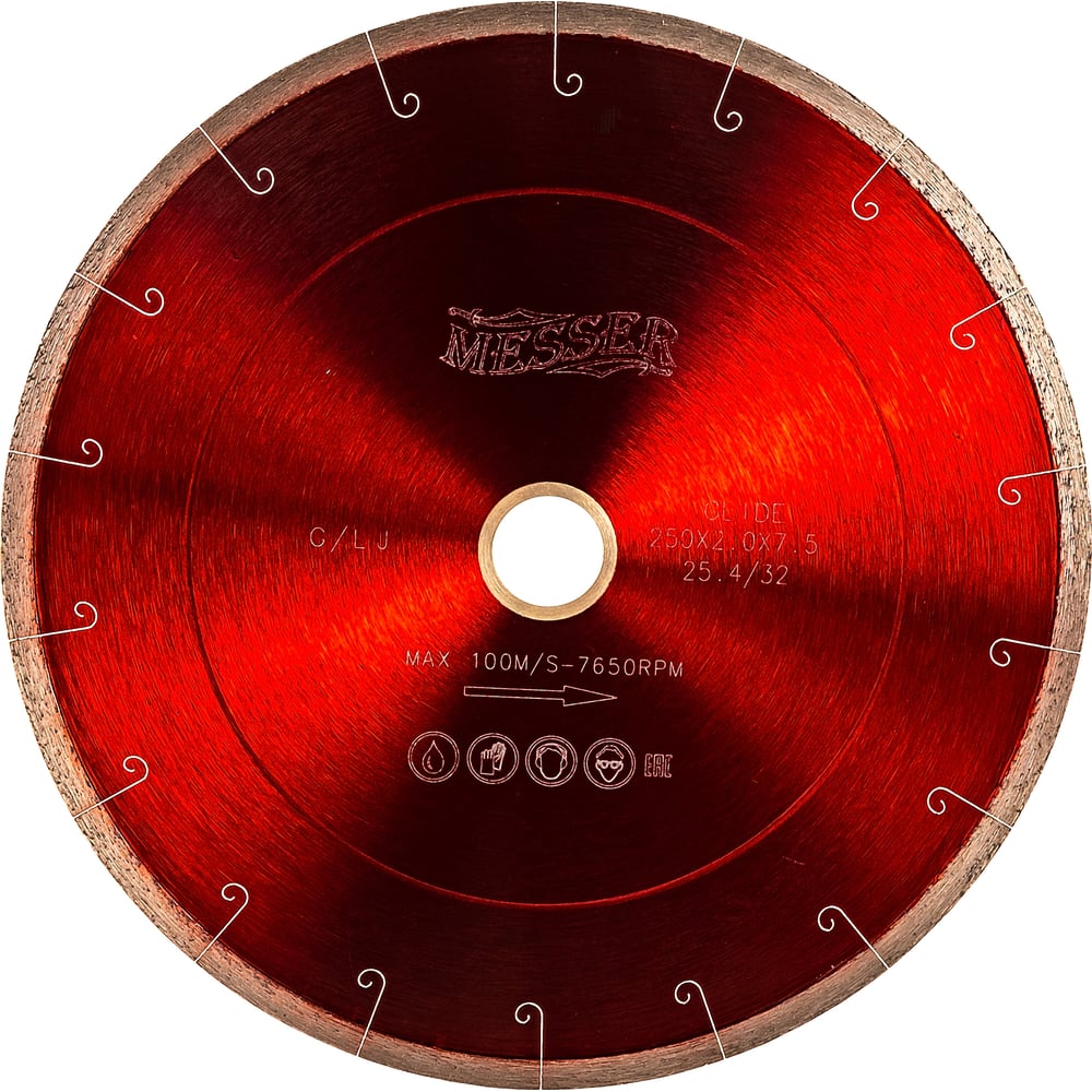 Диск алмазный сплошная кромка с микропазом G/L J-slot по граниту 250D-1.6T-7.5W-25.4/32 MESSER 01-24-250