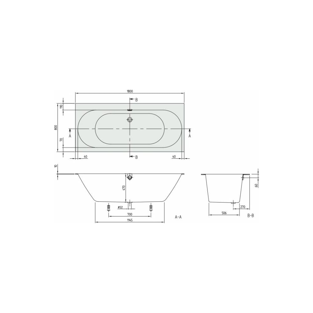 | Диаметр выпуска (отверстия для слива) | 52 мм |