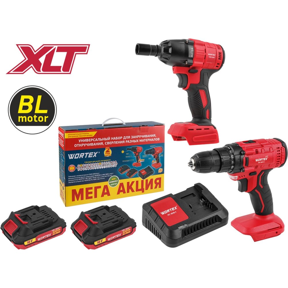 Набор аккумуляторного инструмента WORTEX: шуруповерт + гайковерт ALL1, в коробке 1329368
