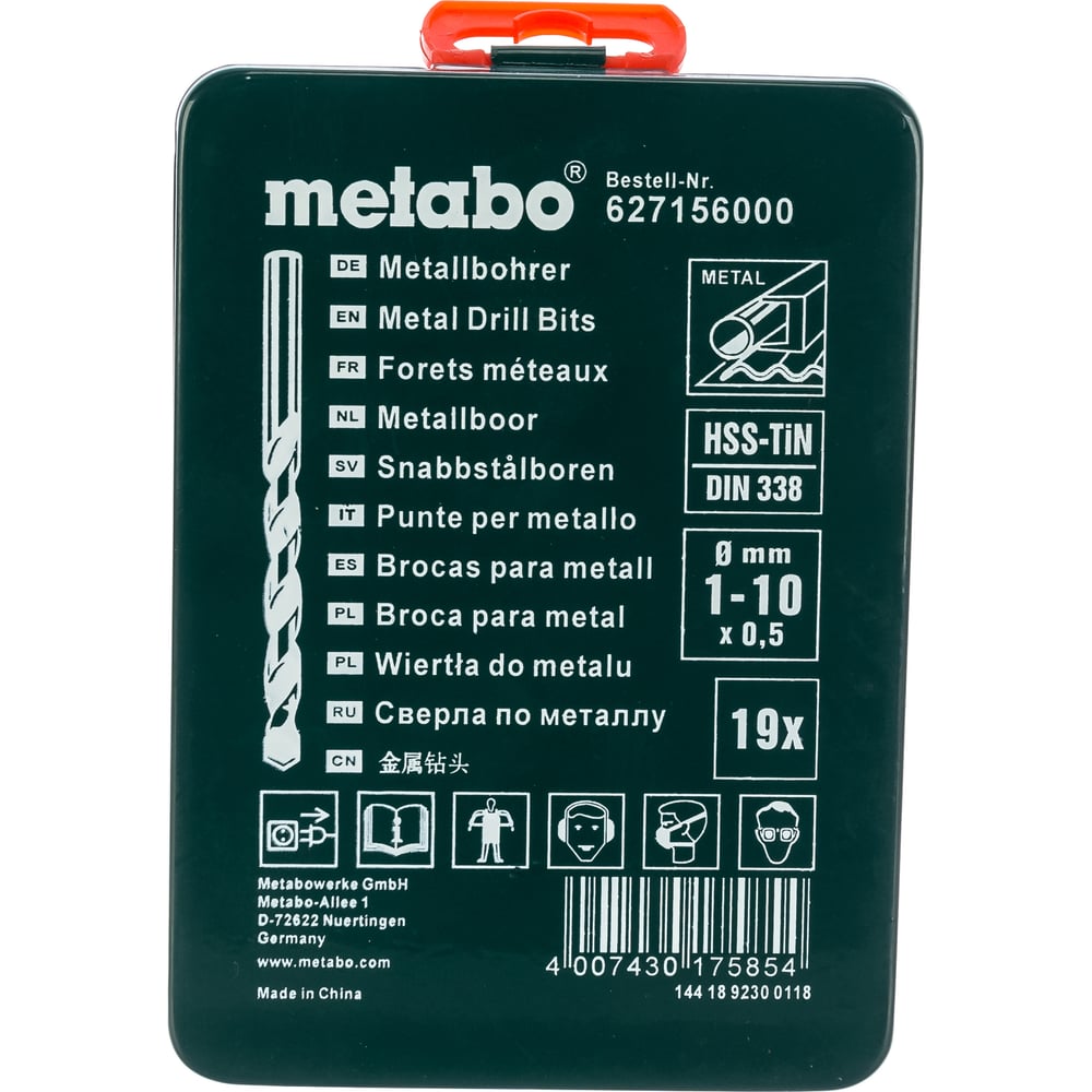 Набор сверл 19 шт. (1-10 мм; HSS-TiN) Metabo 627156000