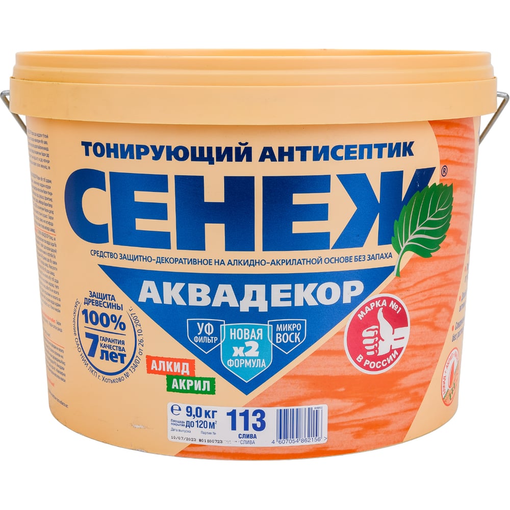 Антисептик для дерева СЕНЕЖ АКВАДЕКОР Х2-113 слива, 9 кг 11071