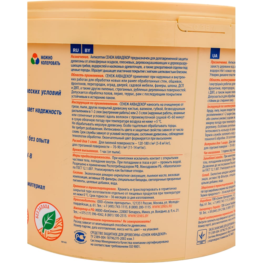 | Состав | состав на алкидно-акрилатной основе с добавлением льняного масла, биоцидов, активных УФ-фильтров, микровосков |