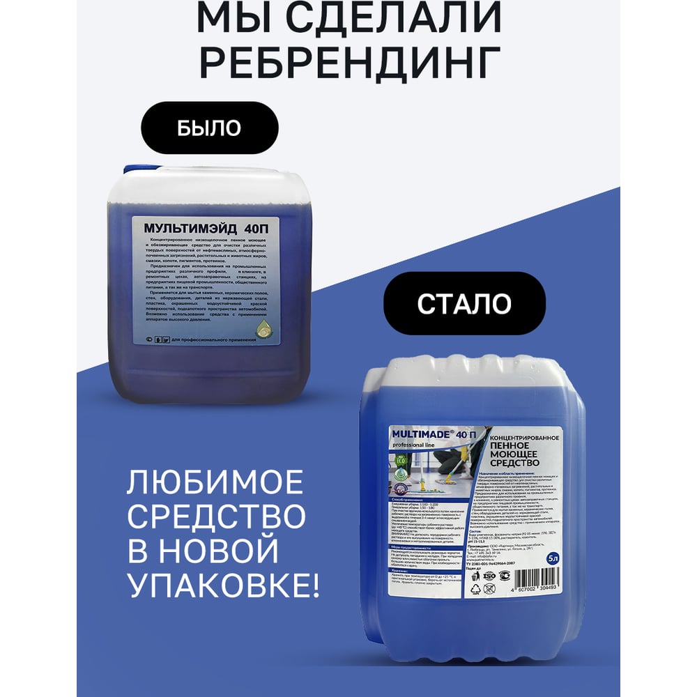 Щелочное пенное моющее и обезжиривающее средство, Мультимэйд 40П 5 л 4607002304493