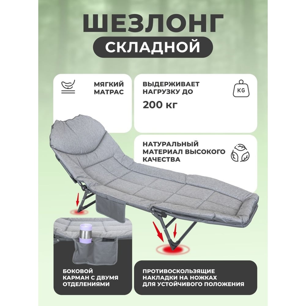 Складной шезлонг F-FG-HY-8008G (52530) 32x64x200см, макс. нагрузка 200кг, серый