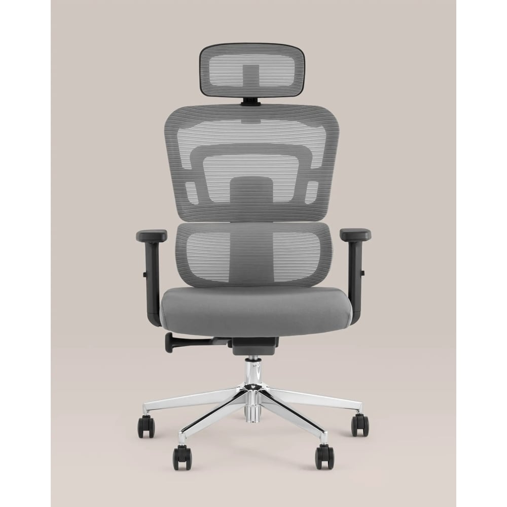 Габариты без упаковки 1240х680х690 мм Стиль современный Регулировка высоты сиденья да Требует сборки да Подлокотники да Подъемный механизм да Механизм качания да Регулировка высоты спинки нет Регулировка высоты подлокотников да Механизм вращения да Подголовник да Регулировка наклона спинки да Подставка для ног нет Max нагрузка 120 кг Ширина сиденья 480 мм Глубина сиденья 510 мм Ширина спинки 480 мм Min высота сиденья 440 мм Мах высота сиденья 520 мм Поясничный упор есть Цвет спинки серый Материал крестовины металл Материал подлокотников пластик Цвет сиденья серый Материал обивки сетка/ткань Колеса есть Ортопедическое нет