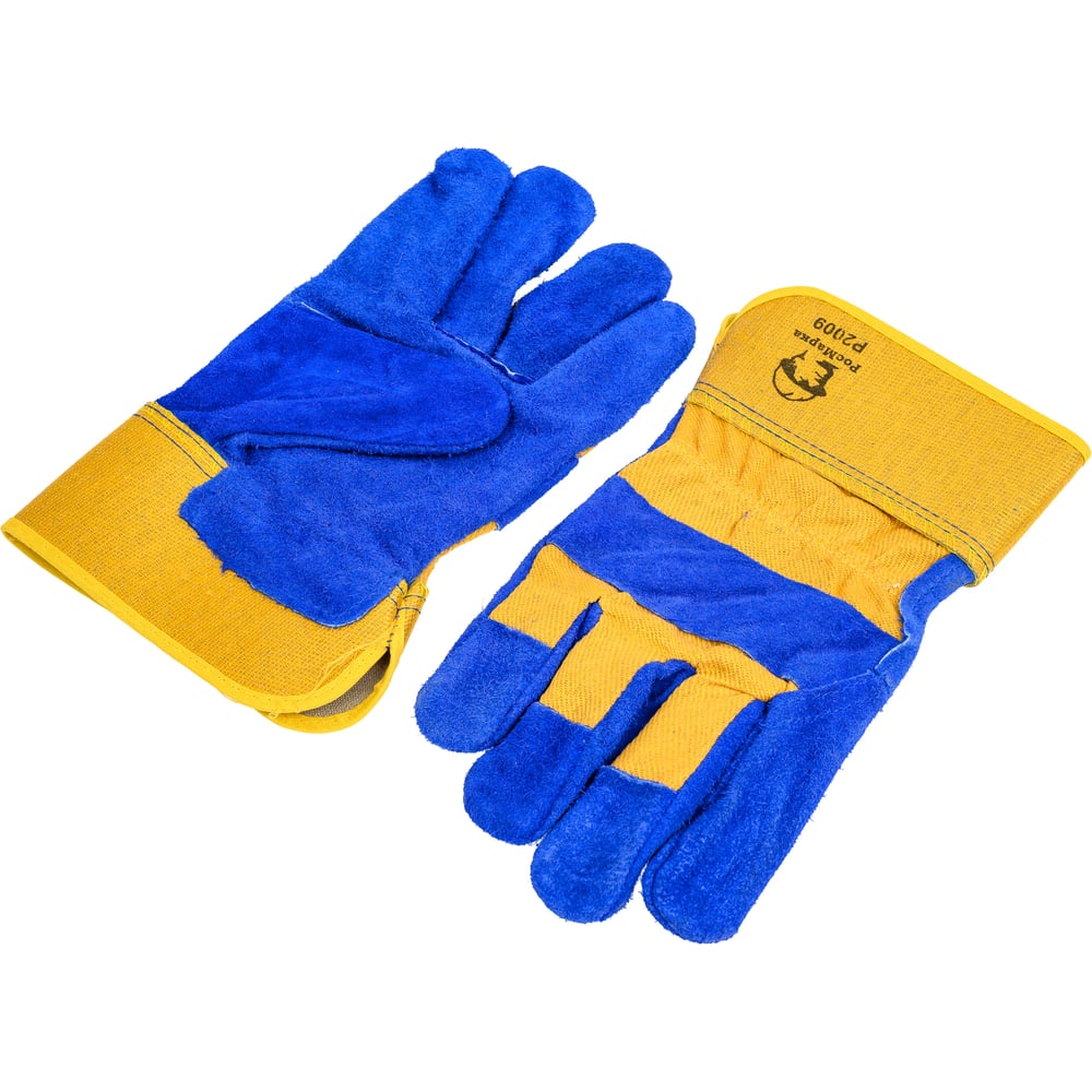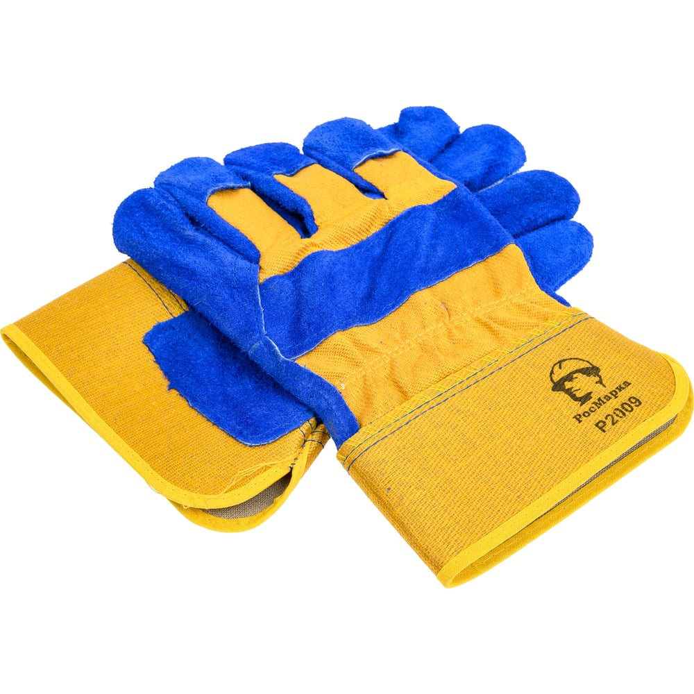 Перчатки спилковые комбинированные РосМарка 2009 синий/желтый, размер 10.5 Р2009