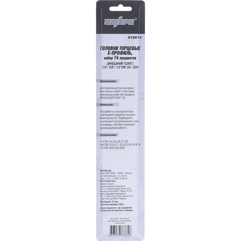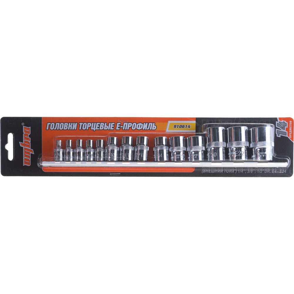 Набор головок Е-профиль 14 предметов для гайковертов Ombra 910614