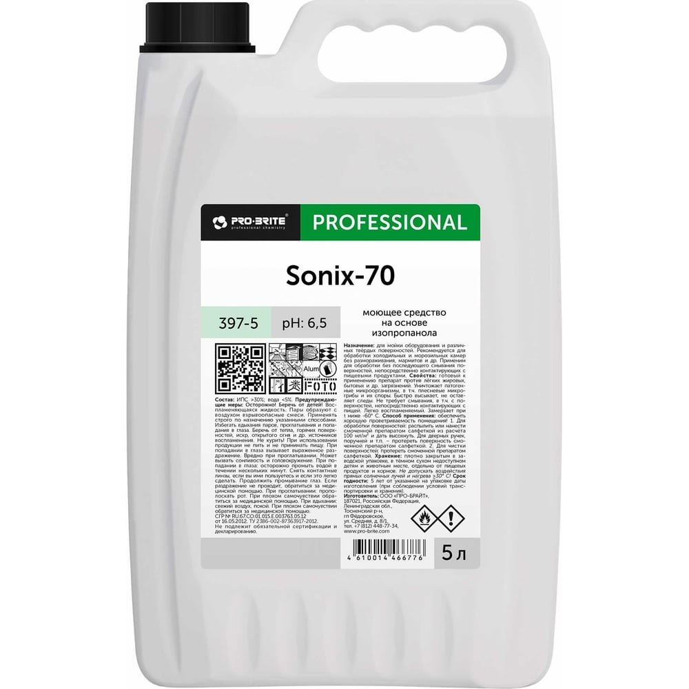 Средство моющее и чистящее с дезинфицирующим эффектом PRO-BRITE SONIX-70 5 л 397-5