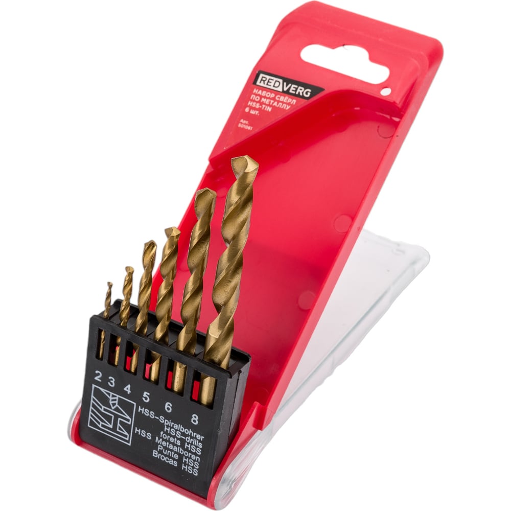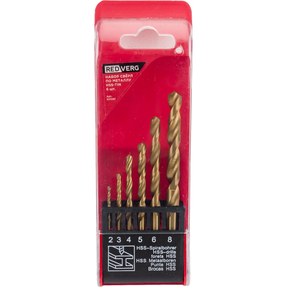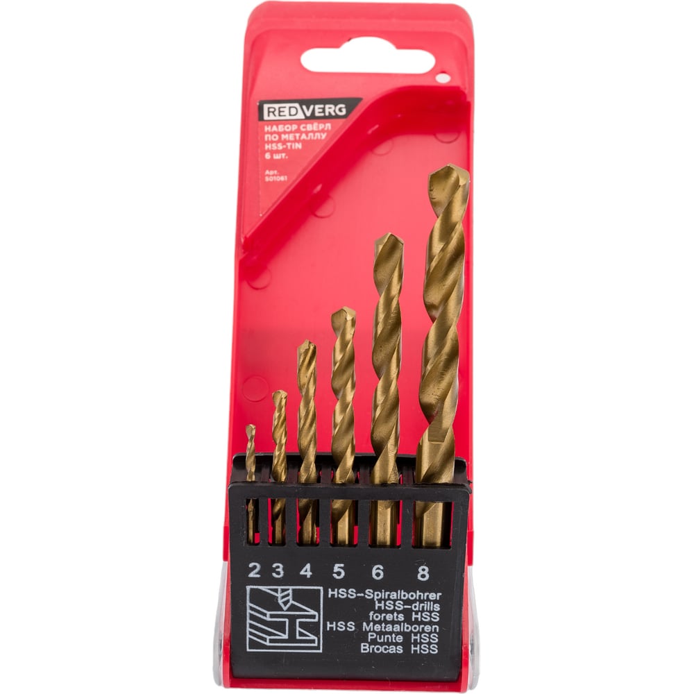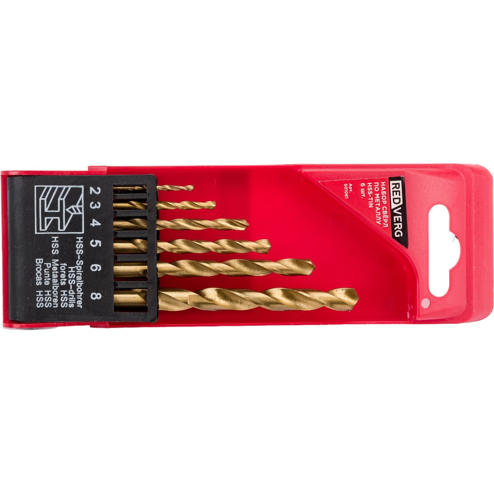 Набор сверл по металлу 6 шт., HSS-TIN, 2-8 мм REDVERG 6627077
