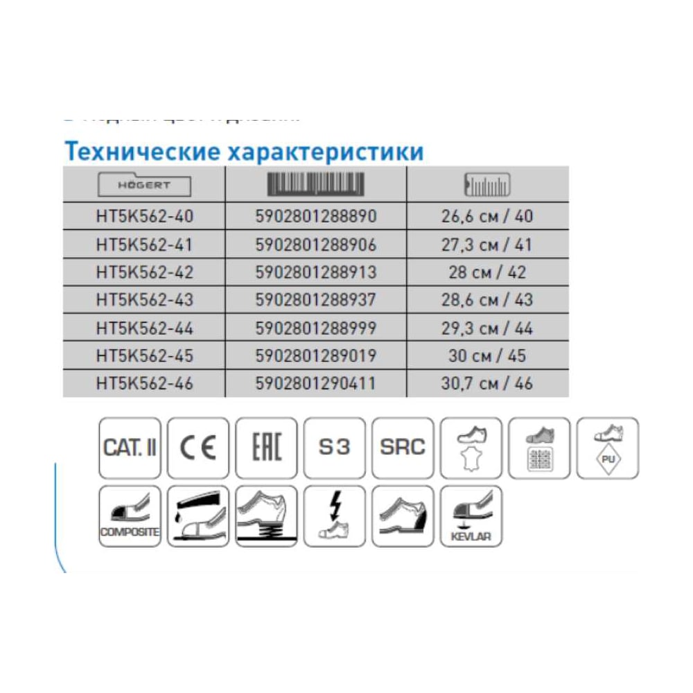 Рабочие ботинки HOEGERT TECHNIK RANDOW, S3, кевлар, композит, размер 40 HT5K562-40