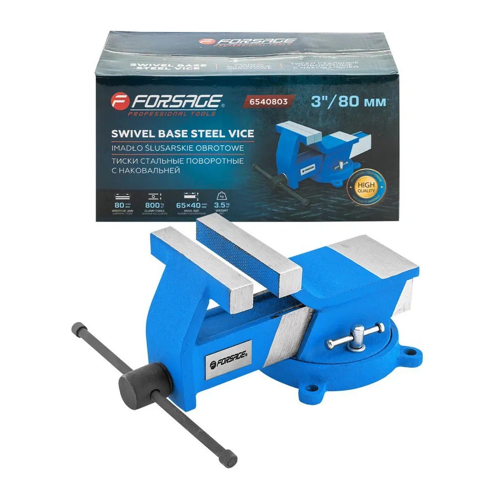 Стальные поворотные тиски Forsage с наковальней 3"-80мм F-6540803(18546)
