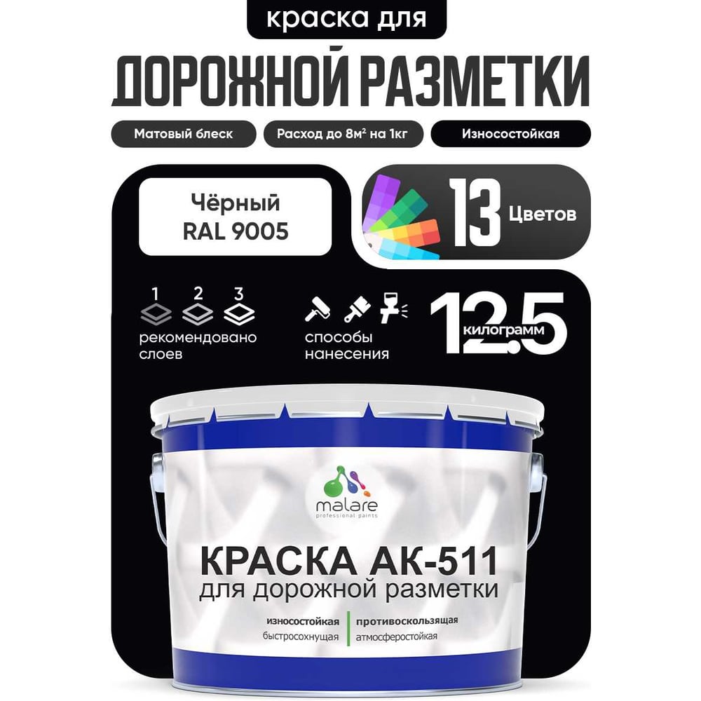 Краска MALARE АК-511 для дорожной разметки, черный, 12,5 кг КАК5119005М1250