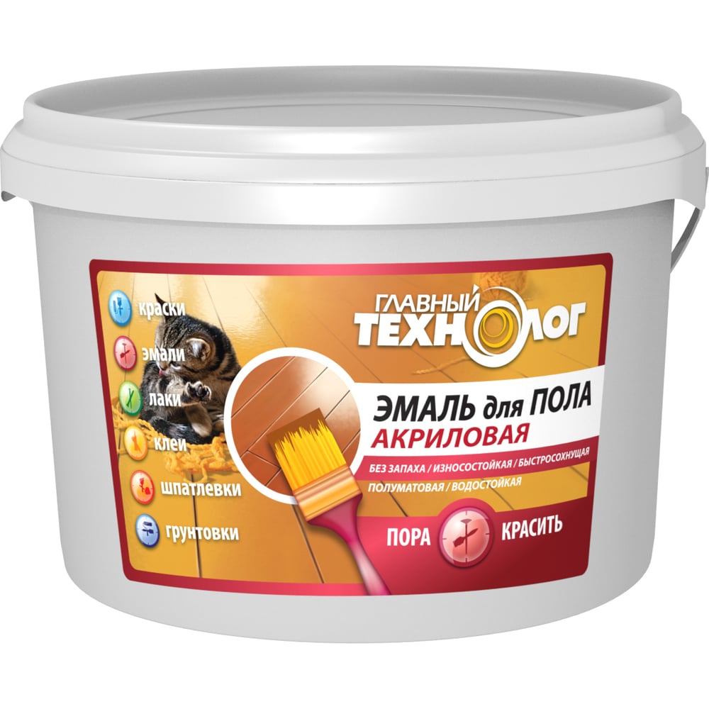 Акриловая эмаль для пола НОВБЫТХИМ белая, "ГЛАВНЫЙ ТЕХНОЛОГ", ведро 2.4 кг 1970