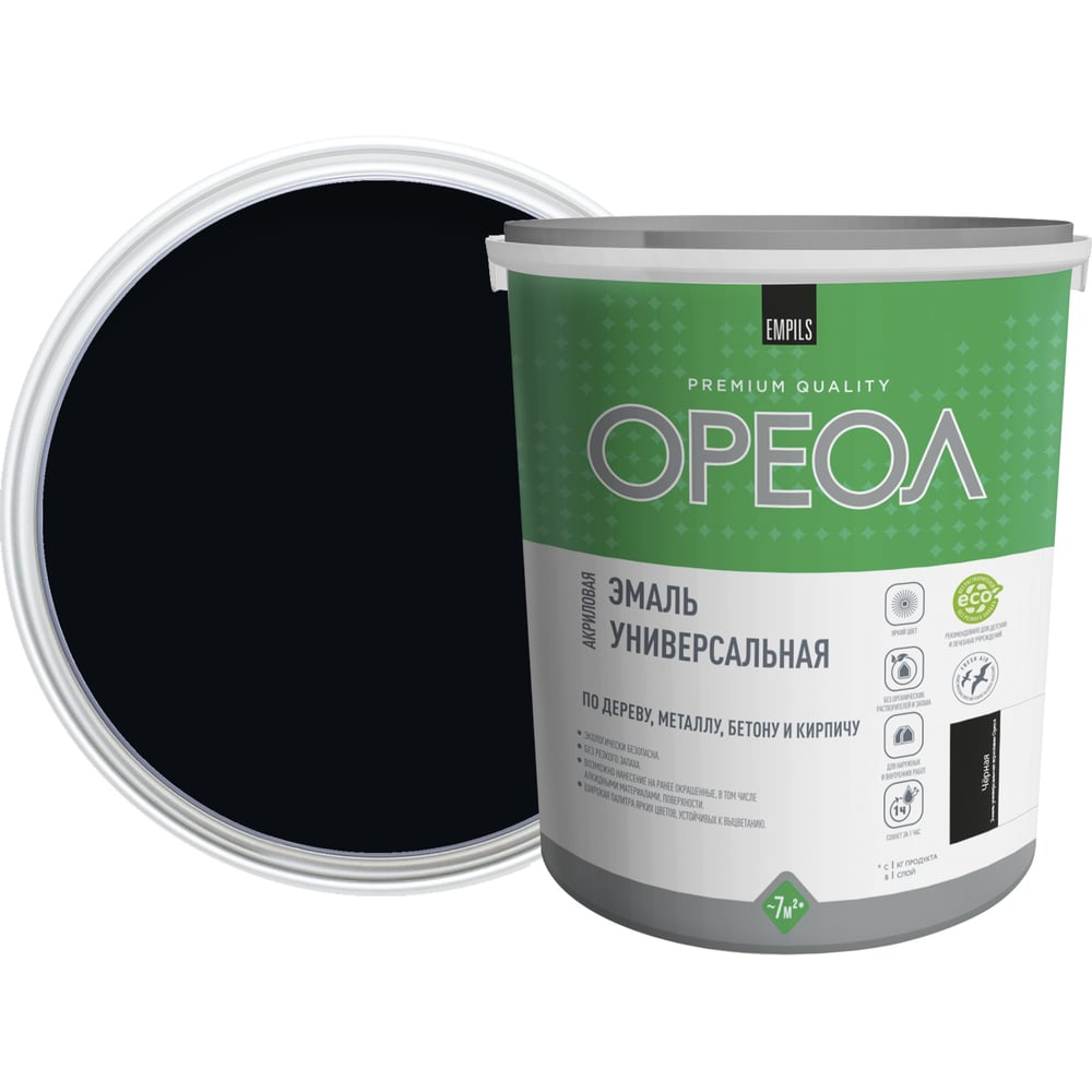 Эмаль акриловая ОРЕОЛ универсальная глянцевая черная 2.5 кг 85901