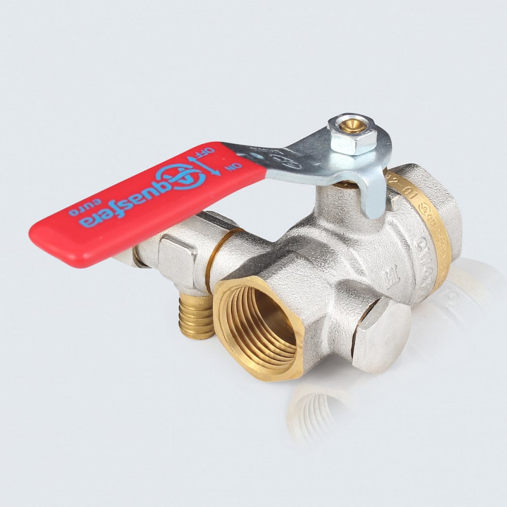 Кран шаровой латунный со спускником Aquasfera 1012 Euro Ду15, Ру40, муфта/муфта, полнопроходной, рычаг 1012-01 109-0453