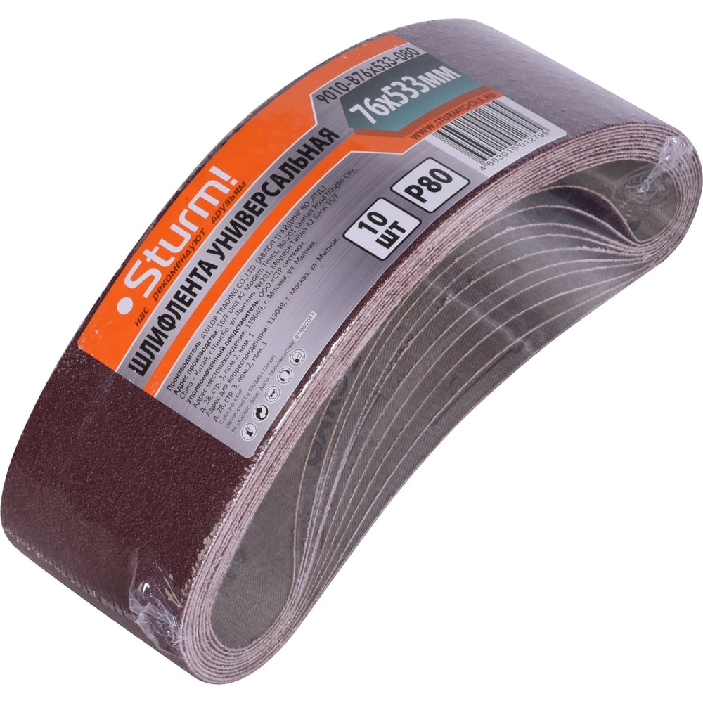Шлифлента (533х76 мм; зерно 80; 10 шт.) для шлифмашин Sturm 9010-B76x533-080