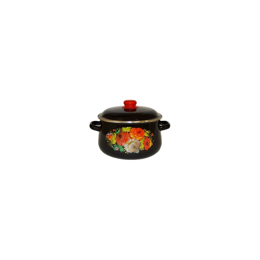 Эмалированная кастрюля СТАЛЬЭМАЛЬ коническая, 5.5 л, черный, жостово ПС1196