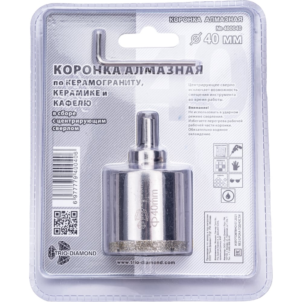 Trio-diamond коронка алмазная по керамике и кафелю с центрирующим сверлом 40мм 400040