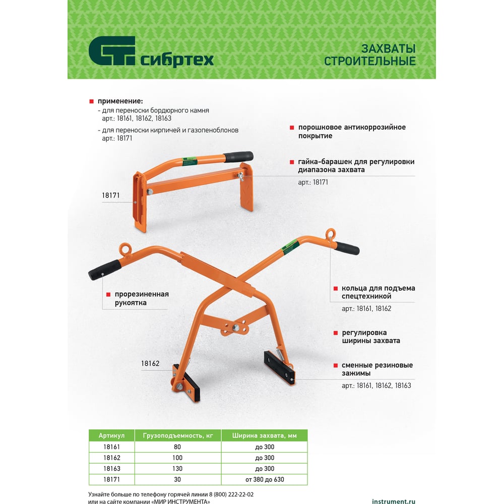 Захват бордюрного камня ручной СИБРТЕХ до 300 мм, 100 кг 18162
