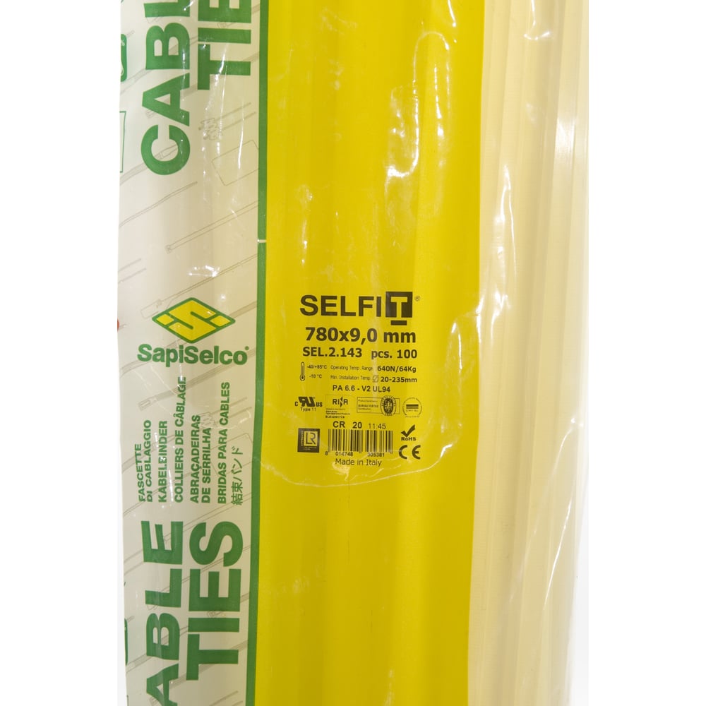 Стяжки натурального цвета SapiSelco 9х780 мм, полиамид 6.6, уп. 100 шт. SEL.2.143R
