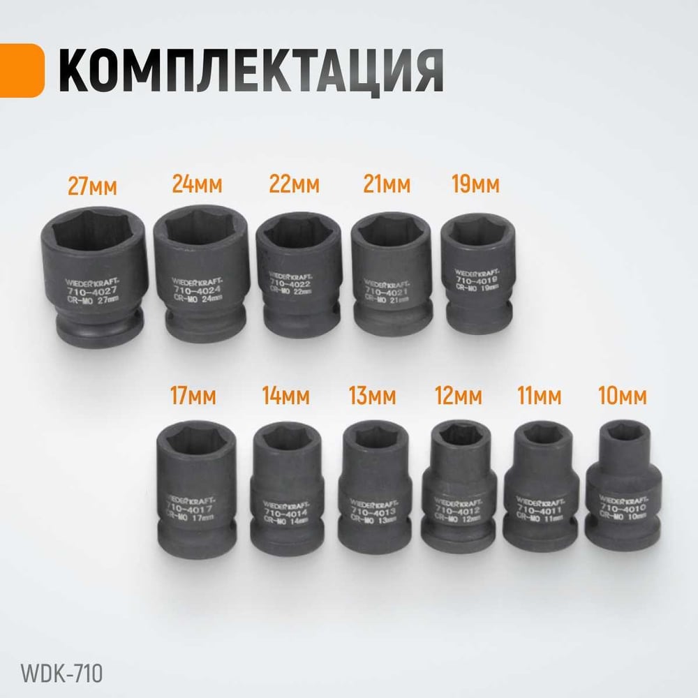 Набор головок ударных (10-27 мм; 1/2"; 11 шт.) WIEDERKRAFT WDK-710