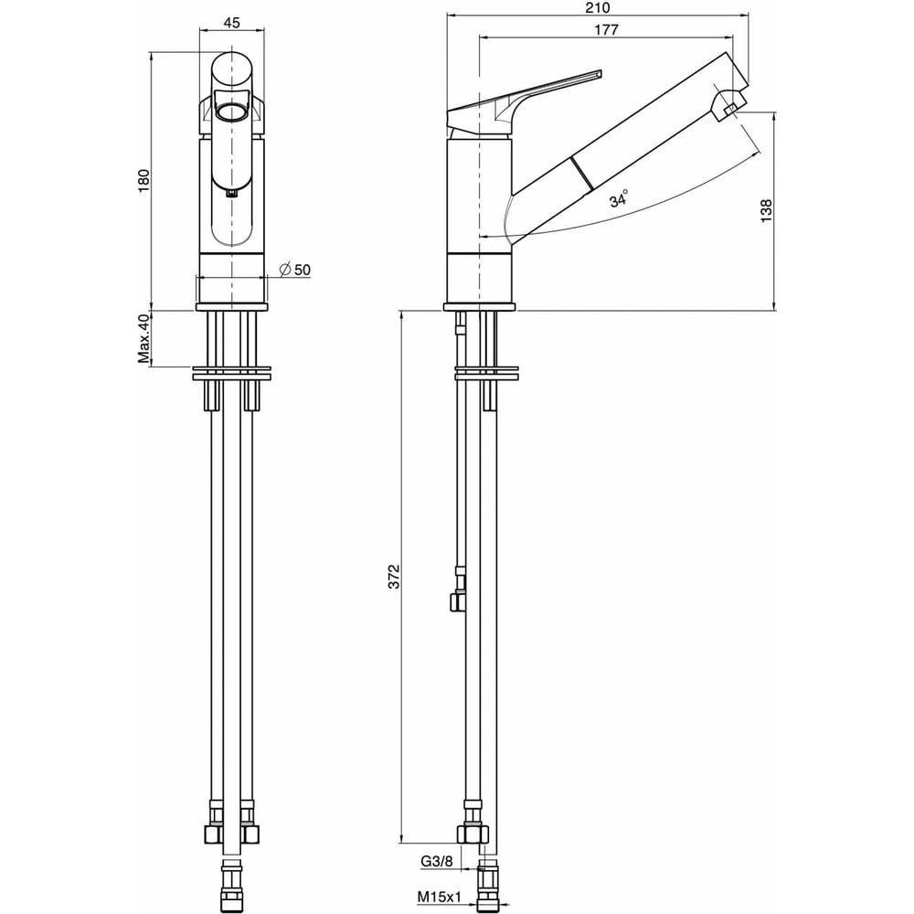 Покрытие глянцевое Цвет хром Тип установки настольный/на раковину Стиль современный Материал корпуса латунь/ABS-пластик Поворотный излив да Назначение для кухни Тип крепления на шпильку Гибкий излив нет Длина излива 210 мм Высота смесителя 180 мм Лейка нет Термостат нет Встраиваемый нет Аэратор нет Переключатель на фильтр нет Тип смесителя однорычажный Форма излива воды традиционная Запорный клапан керамический картридж Форма смесителя округлая Выдвижной излив да Излив есть Складной нет С щеткой нет Двойной излив нет Размер крепления G3/8 Направление струи под углом Диаметр отверстия в раковине 50 мм ГОСТ/DIN нет Высота излива 138 мм Мах толщина столешницы 40 мм Расположение рычага сверху Расположение термостата без термостата