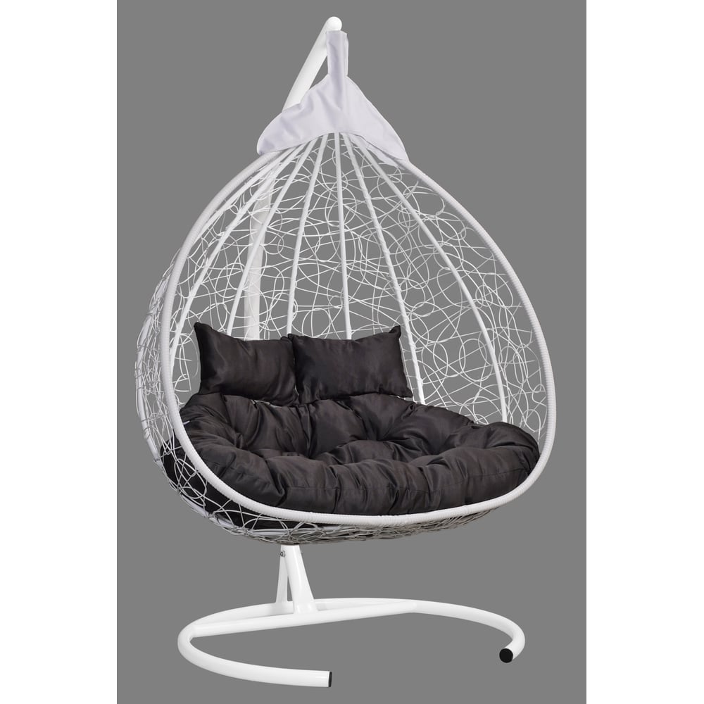 Подвесное двухместное кресло-кокон Лаура FISHT белое + белый каркас, подушка антрацит велюр №19 FIS 207 №19