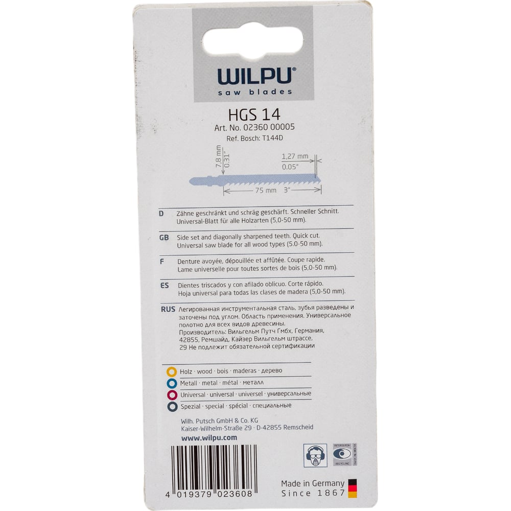 Wilpu пилка hgs 14x5шт/уп для дерева до 50мм быстрый рез 236000005