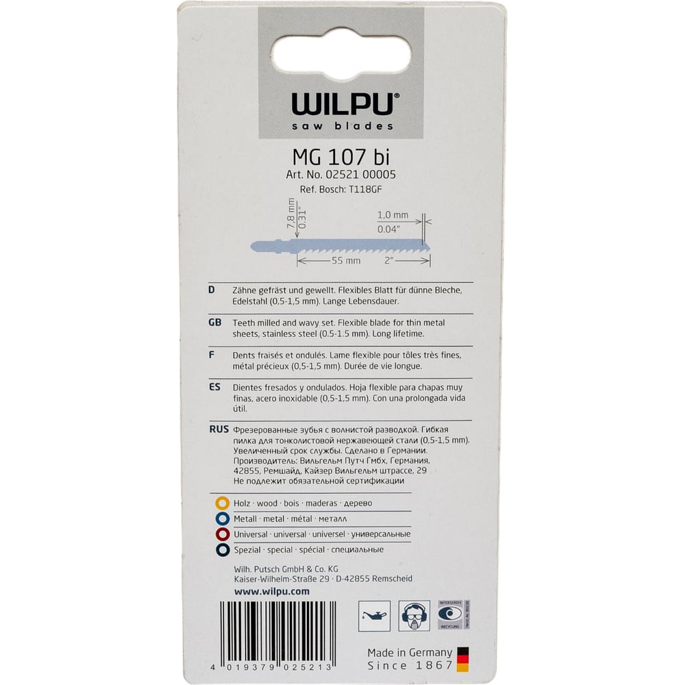 Wilpu пилка mg 107 bi х5шт/уп для тонкой жести, высокосортной стали от 0,5 до 1,5мм 252100005