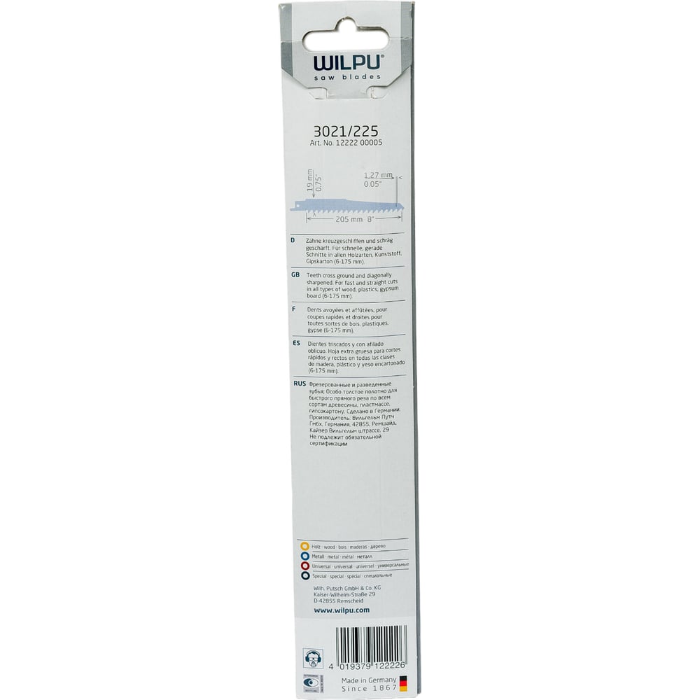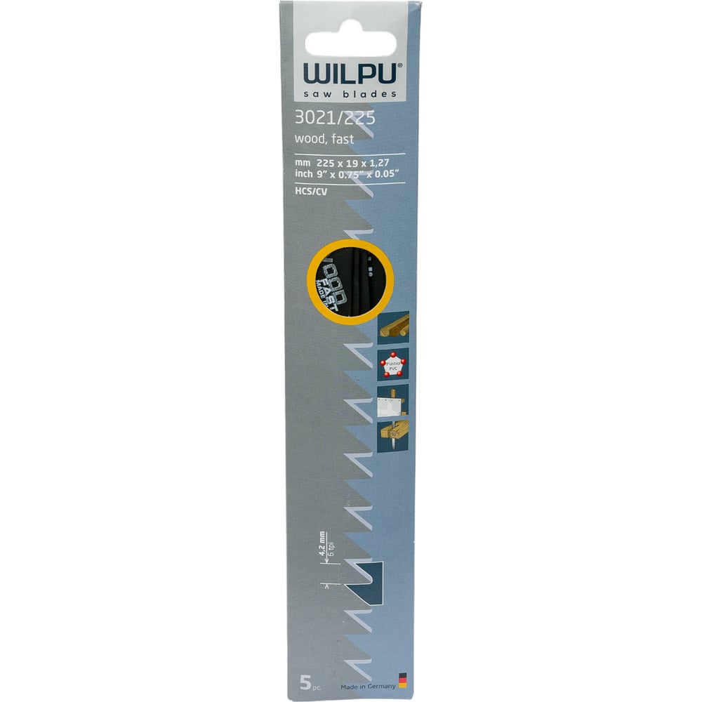 Полотно по древесине 3021/225 (5 шт; 225х19х1.27 мм; 205 мм; 6 TPI) WILPU 1222200005