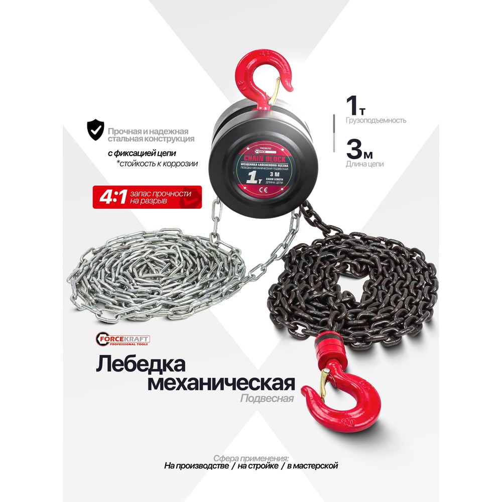 Подвесная механическая лебедка ForceKraft FK-TRC9010 с фиксацией цепи натяжения 48591 FK-TRC9010(48591)