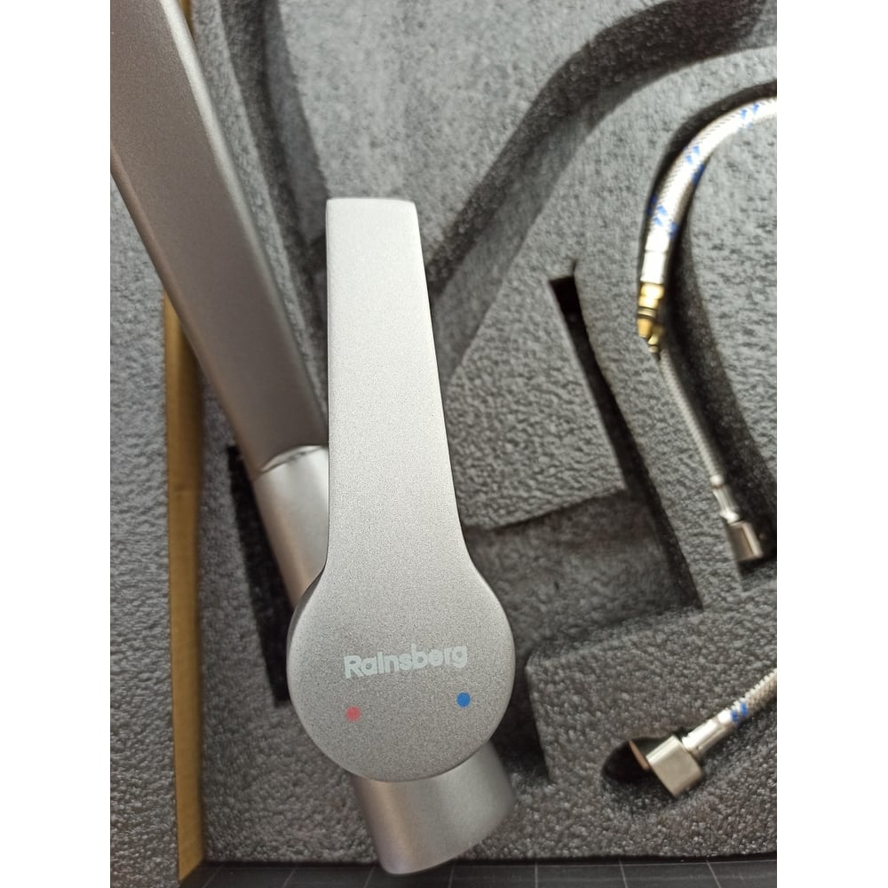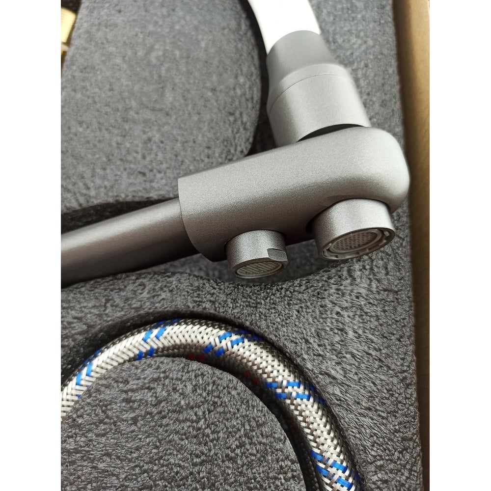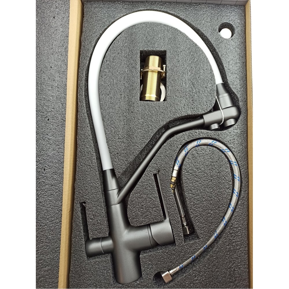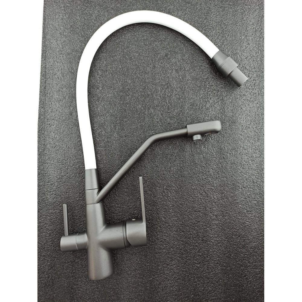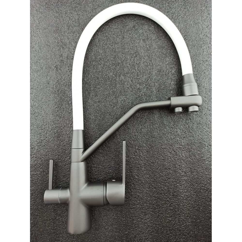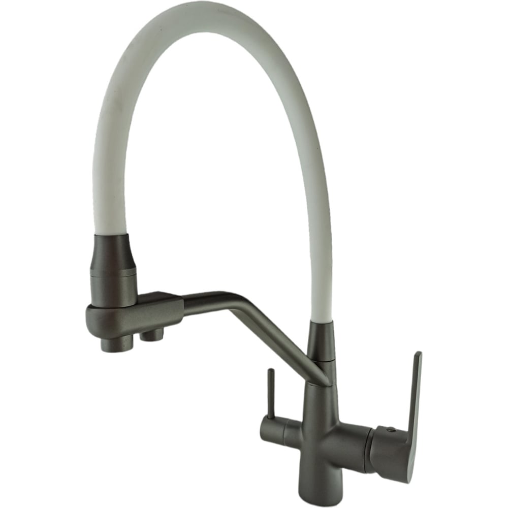 Смеситель для кухни Rainsberg графит, однорычажный, с гибким белым изливом R603CY-0