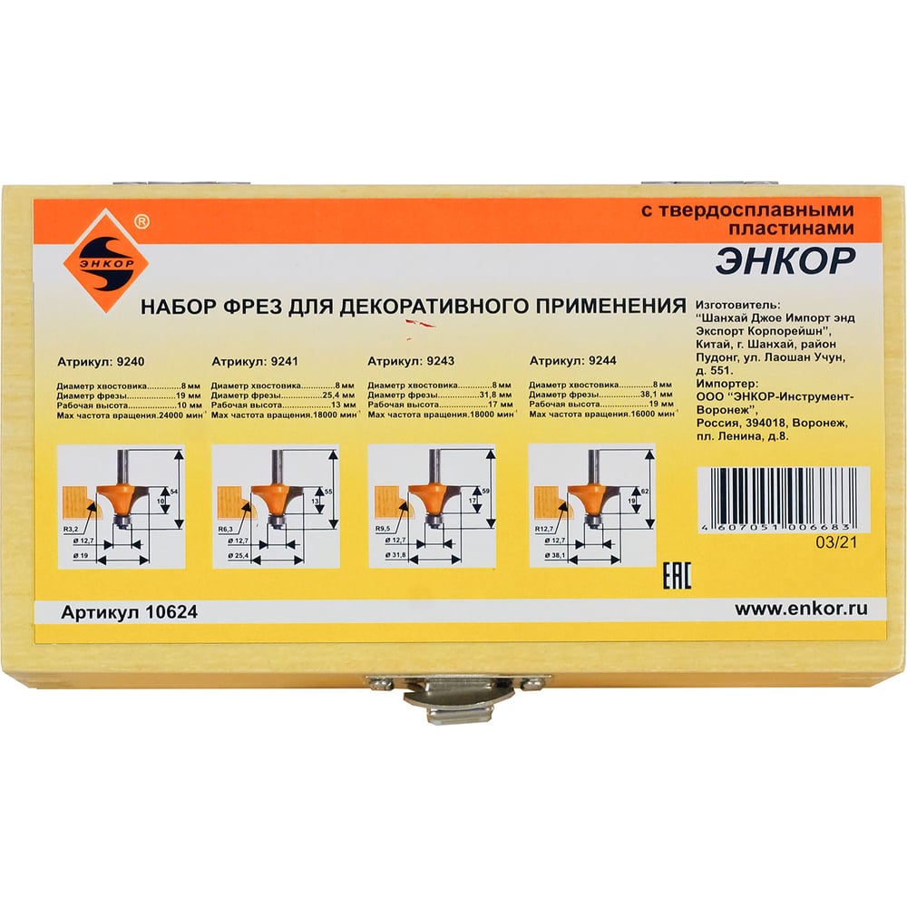 Набор фрез 4 шт. для декоративного применения Энкор 10624