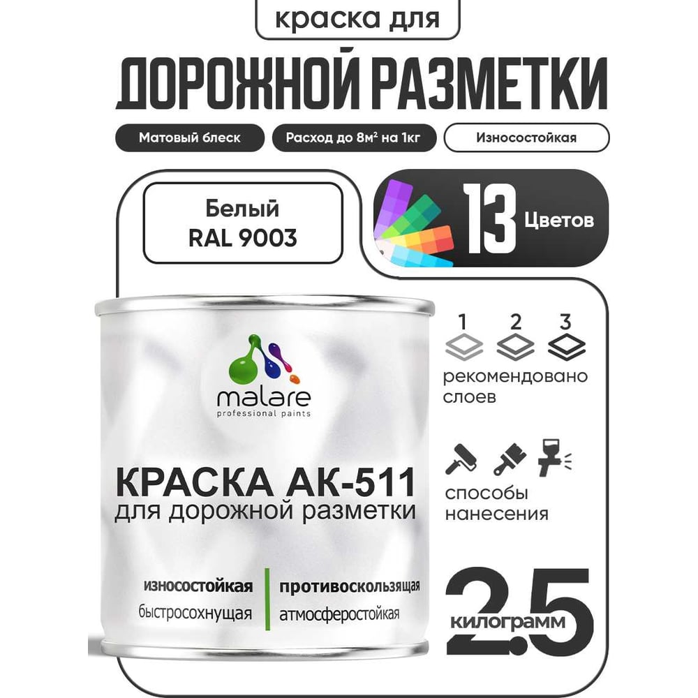 Краска MALARE АК-511 для дорожной разметки, белая 2,5 кг КАК5119003М0250