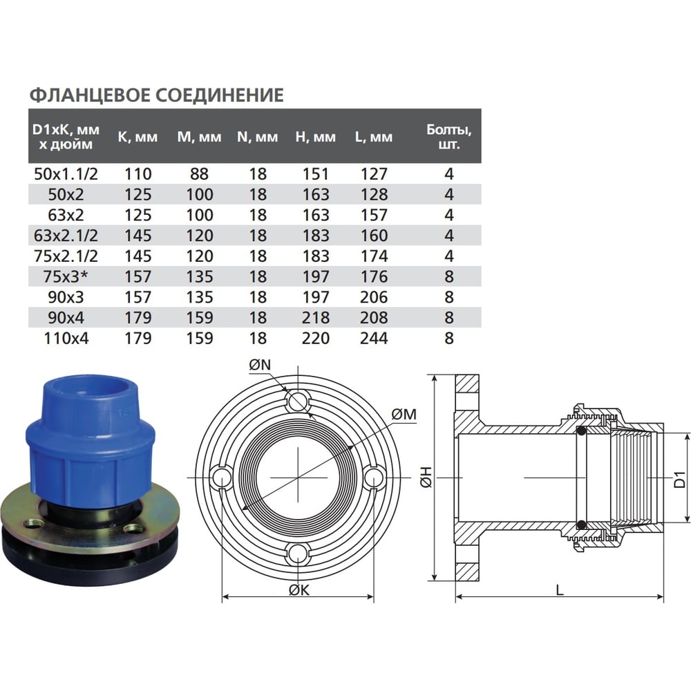 Фланцевое соединение TEBO ПНД компрессионное 63x2" T-ПНД.Фл.0.63x2.CN