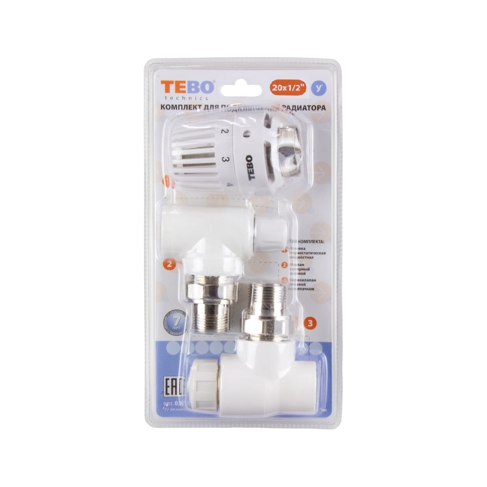 Комплект TEBO C-TB №3 1/2 (термостатический угловой с колпачком 20x1/2, клапан запорный угловой 20x1/2, термостатическая головка) 030061111