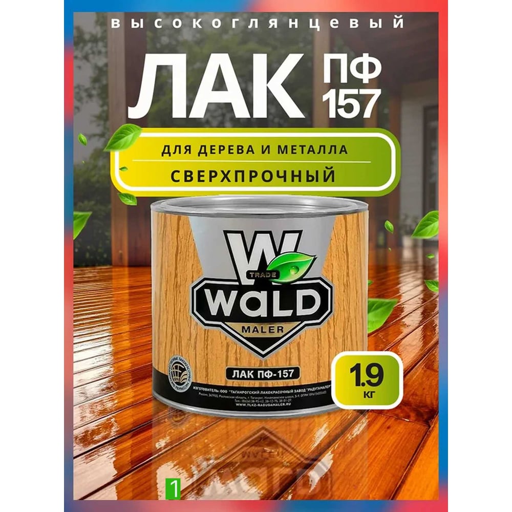Лак бесцветный высокоглянцевый Радугамалер ПФ-157 1,9 л 4650001275004